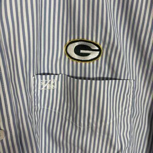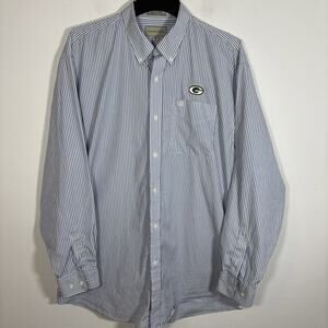 Cutter & Buck Green Bay Packers Button Front Dress Shirt Cotton XXL Blue Striped