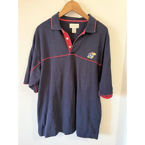Cutter & Buck KU Jayhawks XL Short Sleeve Collar Polo Shirt Navy Red Vintage