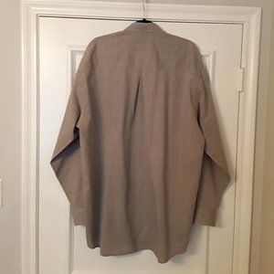 Cutter & Buck has put together a beautiful Khaki & Black weave long sleeve shirt in 100% cotton. It is a great shirt for business casual or to wear with jeans. Machine washable & in excellent condition with the exception of a "XX" mark put on the label by the previous owner's tailor to help coordinate his wardrobe selections (see photo).