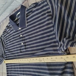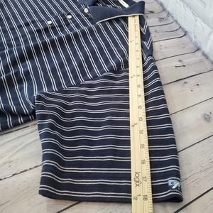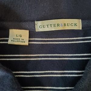 Cutter & Buck Large 1/4 Button Short Sleeve Polo Shirt Navy Blue Striped