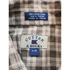 Cutter & Buck Men's 100% Cotton Long Sleeved Shirt Brown and Tan Plaid Large