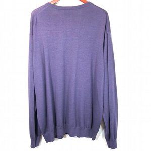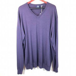 The Cutter & Buck Men's Douglas V-Neck provides modern style perfect for a professional setting. The 1x1 rib collar, cuff, and hem, linked seams, fully-fashioned construction, and English shoulder create an impactful look while the 50% acrylic, 50% merino wool is easy care. New with tags. COLOR ON MODEL IS INCORRECT. SEE DETAIL PHOTOS FOR ACTUAL DEEP HEATHER PURPLE COLOR.