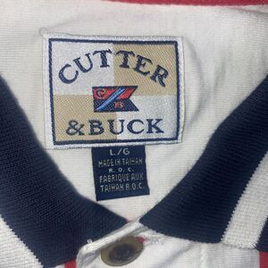 Cutter & Buck Mens L Polo White Red Stripe Mickey Mouse Embroidered Cotton