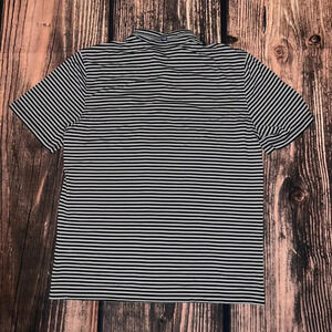 Keywords: Cutter & Buck, men's polo, black, striped, short sleeve, collared, casual wear, embroidered logo, regular fit, high-quality fabric, pre-owned.