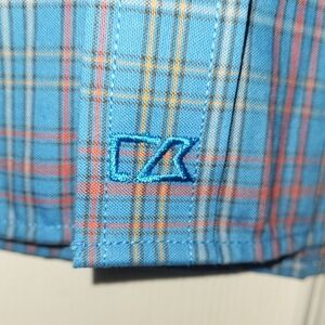 Cutter & Buck Men's Plaid Short Sleeve Shirt Easy Care Size Medium Blue Pink