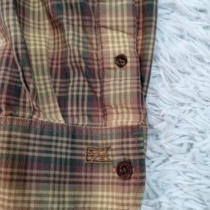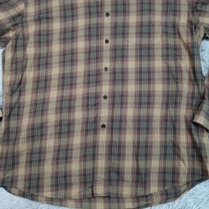 Cutter & Buck Mens Shirt Button Up Brown XL Plaid Long Sleeve Pocket Collar