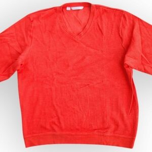 Elevate your style with this vibrant orange-red V-neck sweater. Perfect for any occasion, this sweater offers both comfort and a pop of color to your wardrobe.