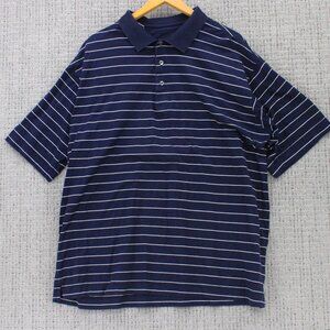 Cutter & Buck Polo Shirt Mens 2XL Navy Blue Striped Casual Signature Collection