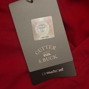 Bold red pullover with Cutter & Buck branding. Ideal for casual wear.