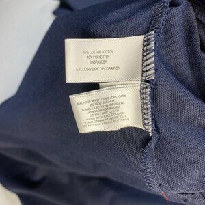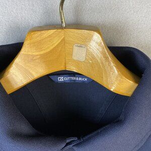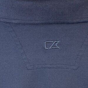 This Cutter & Buck men's polo shirt in size 2XL is navy blue with a collared neckline and long sleeves. Made from a cotton blend knit fabric with a dark wash, it is designed for golf performance with DryTec technology. The shirt features a pullover closure and a spread collar style, making it a stylish and functional addition to any golfer's wardrobe.