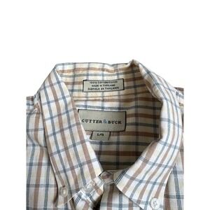 Cutter & Buck Short Sleeve Button Up Men's Large brown/blue Casual