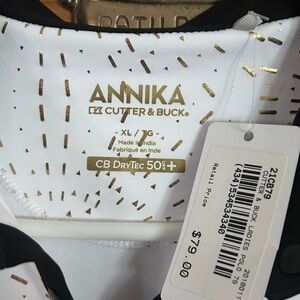 Cutter & Buck Sleeveless Golf Polo Shirt XL Black White Gold Detail NWT