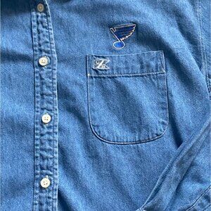 #nhl #hockey #blues #stlouisblues #womensshirt #denimshirt #buttonfrontshirt #blue #large #guc #goodusedcondition