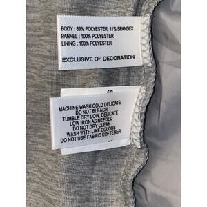 - Knit back and sleeves: 89% polyester, 11% spandex heather jersey knit