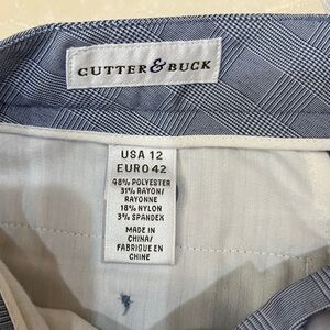 Cutter & Buck Sz 12 Navy Blue Glen Plaid Bermuda Length Golf Shorts High Waist
