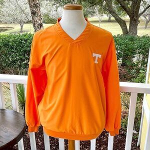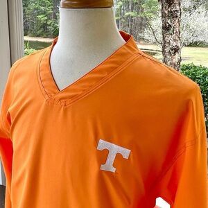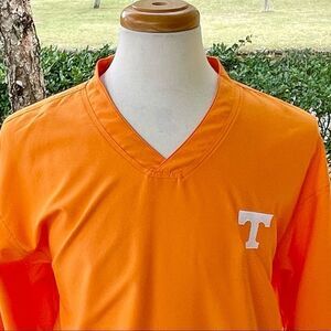 Cutter & Buck Tennessee Volunteers V Neck Pullover. Size Small. 100% polyester. No stains or damage. Stitched “T” on chest, cutter and buck in sleeve. Water resistant, mesh pockets. From smoke free pet free home. See pics of actual item. See measurement card for sizing info.
