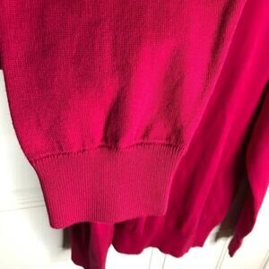 Dark pink (Wildfire) thin knit v-neck sweater with long sleeves.