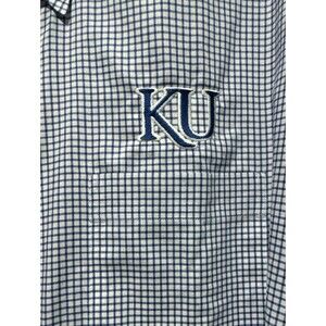 Show your school spirit with this Cutter & Buck UNIVERSITY Of KANSAS KU Men's Blue/White Button Down Shirt in size XL. The shirt features a classic button-down collar and a regular fit, perfect for any occasion. The blue color and check pattern add a touch of style, while the long sleeves and machine washable garment care make it practical for everyday wear.