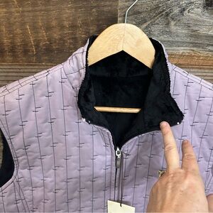 This lady’s lavender and black reversible puffer vest is a size extra large and is new with tags. Please see photos as they are part of the description and show all the details of the vest. Questions? Leave a comment below!