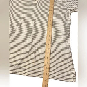 Cutter & Buck polo shirt size Medium womens. Cream colored with blue stripes, 100% cotton.