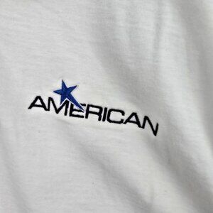 This Cutter & Buck Men's Polo Shirt in size XL blends classic style with premium comfort. Crafted from 100% breathable cotton, this short-sleeve polo in crisp white boasts navy contrast accents on the collar and sleeves, adding a touch of timeless sophistication. The embroidered "American" logo with a blue star on the chest emphasizes a patriotic design, making the shirt versatile for casual or semi-formal settings. Tailored side vents and a two-button placket provide practical features, ensuring excellent fit and comfort. Ideal for a polished and understated look, this shirt is expertly stitched for lasting durability, reflecting Cutter & Buck's renowned quality.