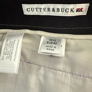 Experience comfort and style with these Cutter & Buck Bermuda shorts, featuring a sleek purple and black design. Crafted from a structured fabric, they offer a modern fit that sits just above the knee, perfect for golf or leisurely walks.