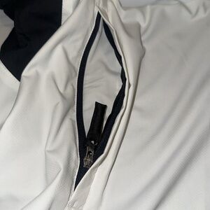 This Cutter and Buck jacket is the perfect addition to any outdoor activity. Made with polyester material, it is both wind and water-resistant, ensuring you stay dry and comfortable no matter the weather. The jacket features a zipper for added style and convenience, and its classic white color and XL size make it a versatile choice for any man's wardrobe. The jacket is machine washable, making it easy to care for, and its polyester lining and insulation material provide extra warmth during the colder seasons. Whether you're walking, playing golf, or hiking, this windbreaker-style jacket is ideal for outdoor activities and is sure to become a favorite in your collection.