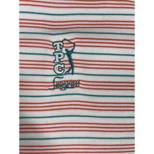 This Cutter and Buck CB DryTec polo shirt features a red, white, and blue horizontal stripe pattern with a white collar for a classic golfwear look. Made with moisture-wicking fabric for breathable comfort, it’s perfect for the golf course, summer outings, or casual Fridays. Relaxed fit in men’s XXL. Please see photos for measurements.