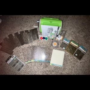 Cuttlebug machine and so many accessories. Some are still in the package. Most all of it looks new. Serval new blades.