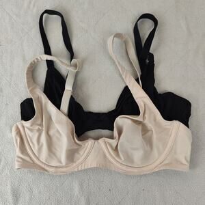 Cuup Lot of 2 Demi Bras Size 32B Beige Black Unlined Underwire Adjustable Straps