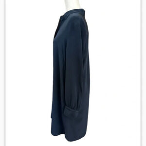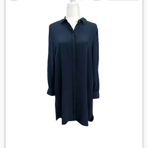 Cuyana 100% Silk Shirt Button Down Long Sleeve Dress Navy size M like new