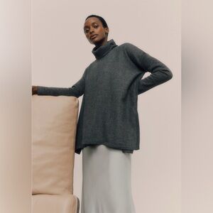 Cuyana Baby Alpaca Oversized Boxy Turtleneck Tunic Sweater Charcoal Gray XS/S