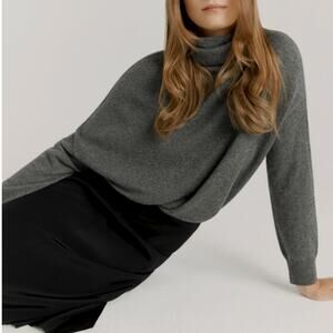 Cuyana Cashmere Blend Heather Gray Turtleneck Asymmetrical Sweater Size S