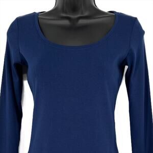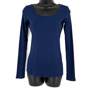 Cuyana Long Sleeve Open Neck Tee in Navy Blue Size X-Small