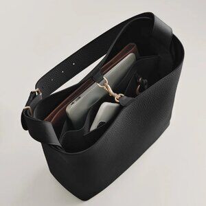 Cuyana Oversized Linea Bag Black Pebble Leather