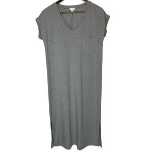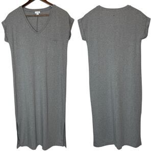 Cuyana Pima Cotton T Shirt Midi Dress Gray Short Sleeve Side Slits Medium