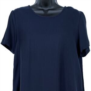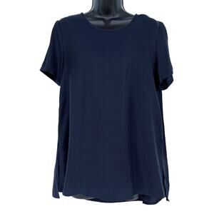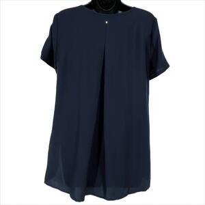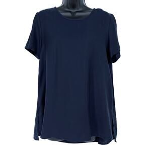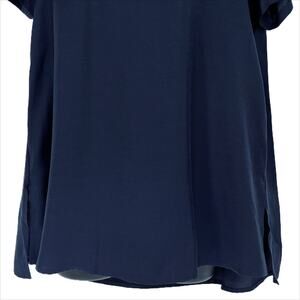 Cuyana Tunic Blouse Pleated Back Short Sleeve in Navy Size X-Small