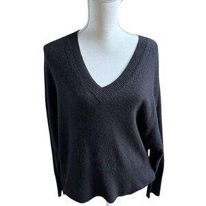 Cuyana Wool Cashmere Black Vneck Sweater L