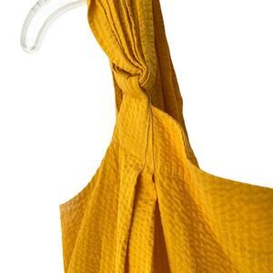 Cuyana Yellow Seersucker Twisted One Shoulder Dress size medium with pockets