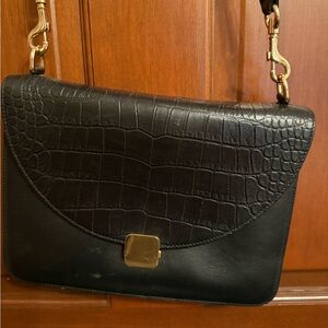 Beautiful black handbag. Very professional vibe from this quality brand. Envelope style with 3 slotted sections inside. The gold hardware and croc embossed flap keep it simple and chic. Excellent used condition. Small mark on front is visible in the photo - price reflects this.