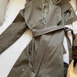 This trench features traditional details like storm flap, a waist belt. Features inside breast pocket and side vents with gold hardware, shell made out of cotton, fully lined