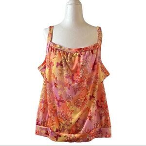 Cw Classics pink & orange bra top sleeveless square neck silky fabric plus size