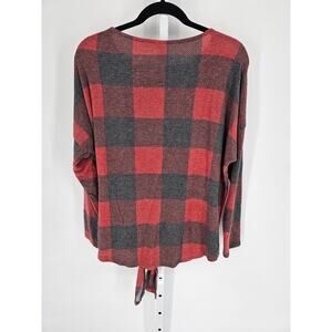 Cy Fashion Women's Red Black Buffalo Plaid Dolman Sleeve Front Tie Knot Top XL