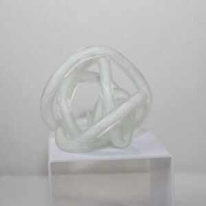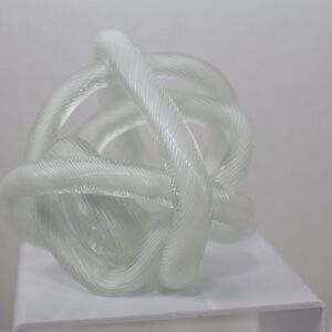 Hand Blown White Cyan Design Glass Rope 5inch tall 5inch wide in very good condition.