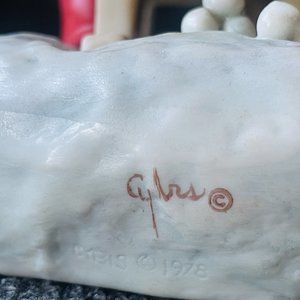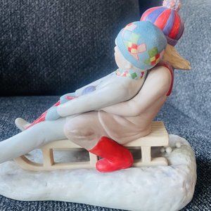 Signed Cybis sledding figurine. Notice the intricate facial expressions. Very detailed. No scratches or chips