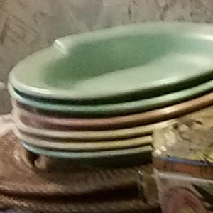 The center of the 2 of the yellow bowls has faint fading and faint marks from use where the food will sit...Otherwise fine condition.