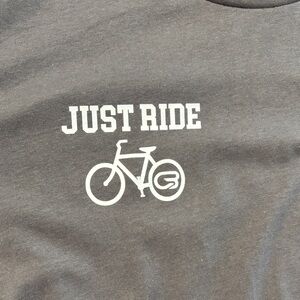 Jersey fit- gray tee with 'Just Ride' graphic. Ideal for casual outings.