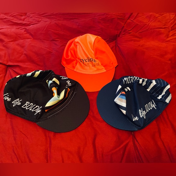 (3) new cycling caps - worn maybe 1x. They are too tight for my Large head. Moisture wicking material.