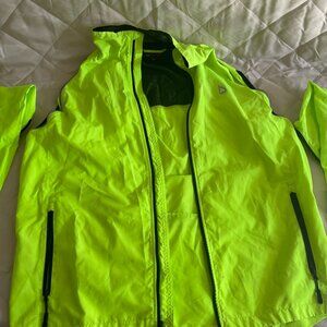 Bright colored cycling windbreaker vest with detachable (zippered) full length sleeves and rear zippered pocket