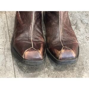 Cydwoq Track Mid Calf Leather Boots Women’s 38 1/2 8 1/2 Square Toe Brown Red